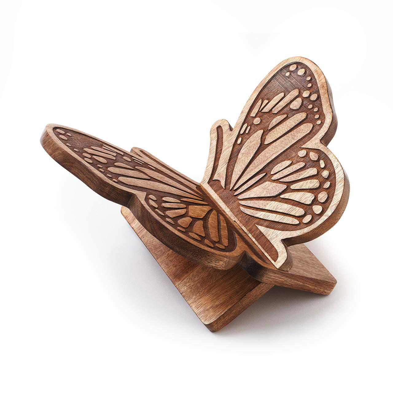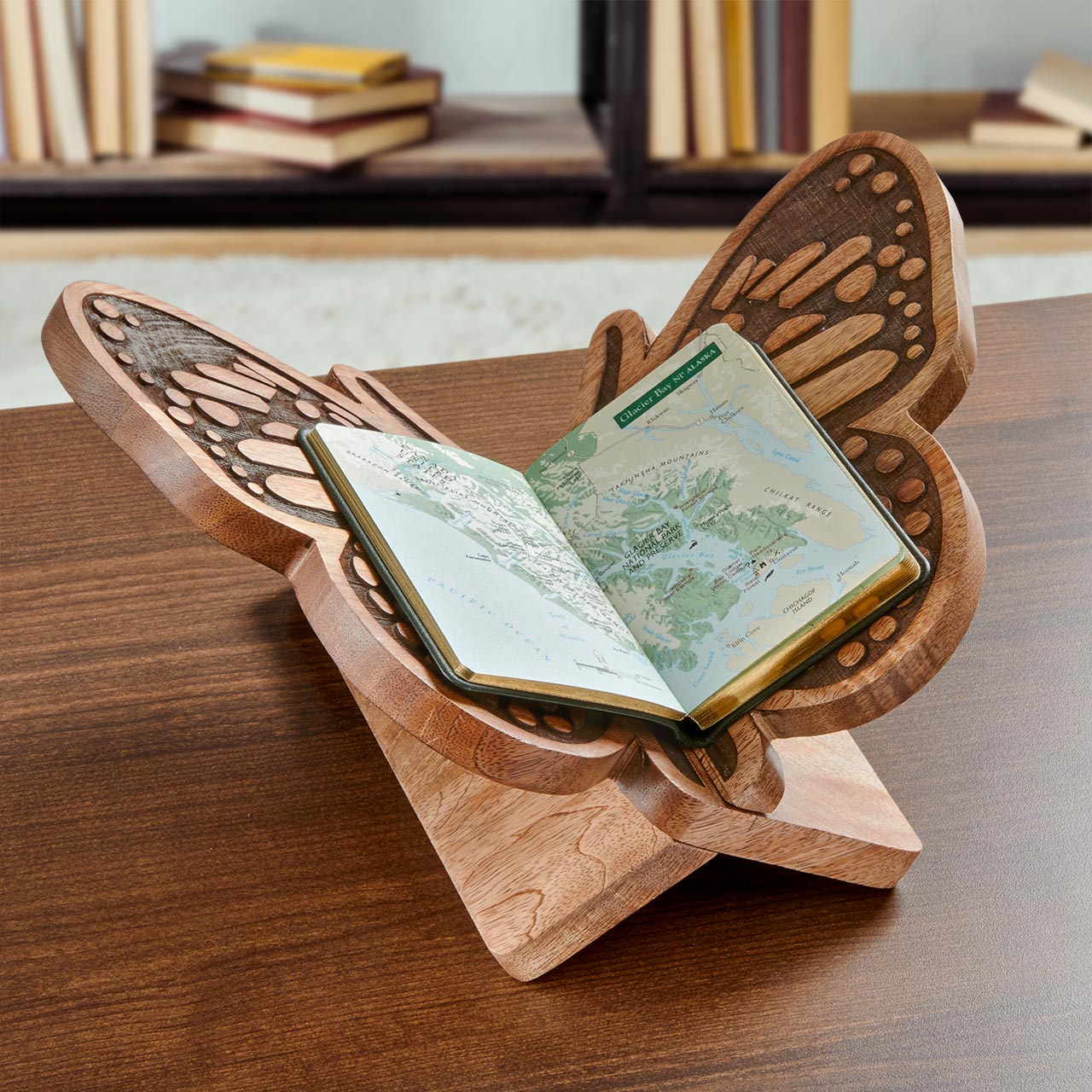 Hand carved of solid, sustainably harvested mango wood, the Butterfly Book Stand cradles a favorite tome for your perusal in its inviting, intricately patterned wings. Ideal for cookbooks, dictionaries, family Bibles or any book you wish to proudly display or read from often. Through the Levenger program, a portion of the proceeds from this and every Tree of Knowledge product will help support the education system of low-income communities in India where this product is made.