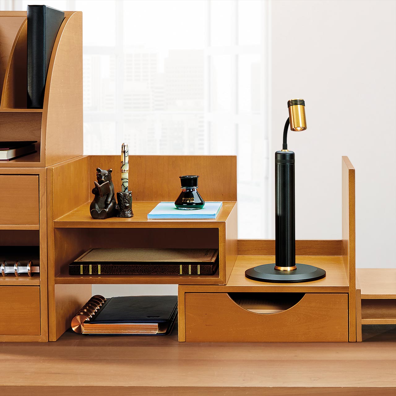 This expandable desk organizer with bookcase shelves works beautifully on its own when you’re short on space but also adds an adjustable component to any existing configuration. With a section that pulls out to make room for more books and files, the Cubi Trundle Bookcase transforms back to a compact, space-saving storage unit with shelves beneath. Optional available separately.