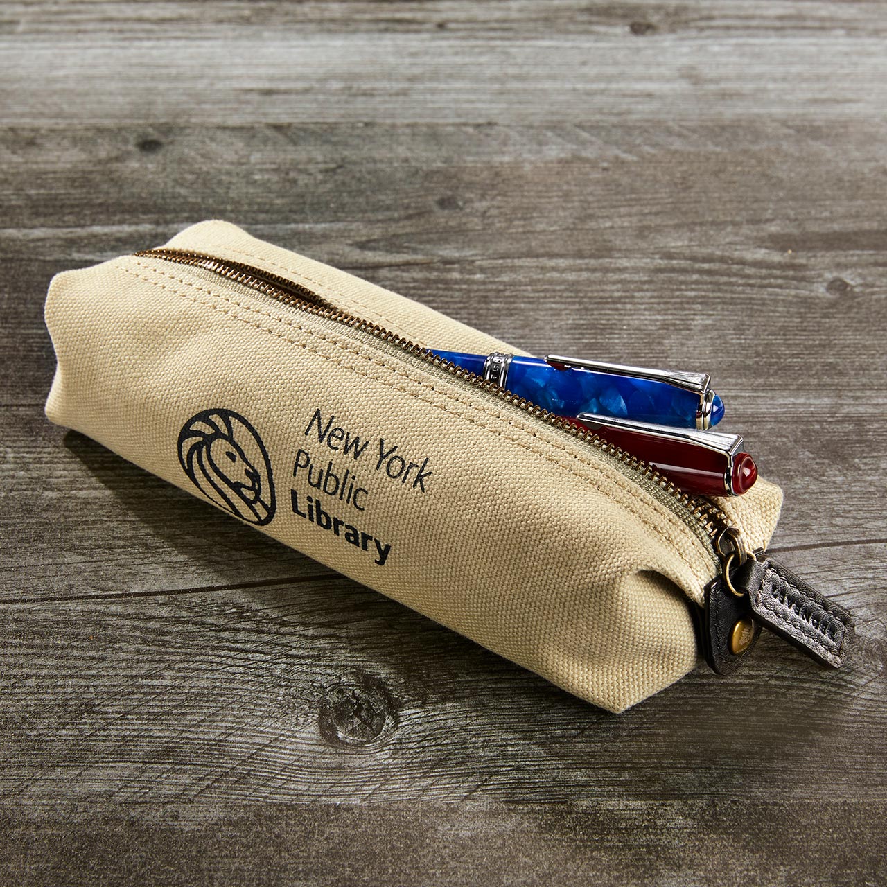 Since 1999, we’ve proudly partnered with the New York Public Library on a variety of products especially for readers. This waxed canvas pencil and pen holder, featuring the Library’s Lion logo and a quote by Daniel Webster, slips easily into a brief, bag or folio and keeps them organized and good to go. This handy pen case can hold up to 16 of your favorite writing instruments, with room to spare for ink refills, erasers and other small items. Pack it full—it’s expandable. As always, a portion of sales benefits the Library through our program.