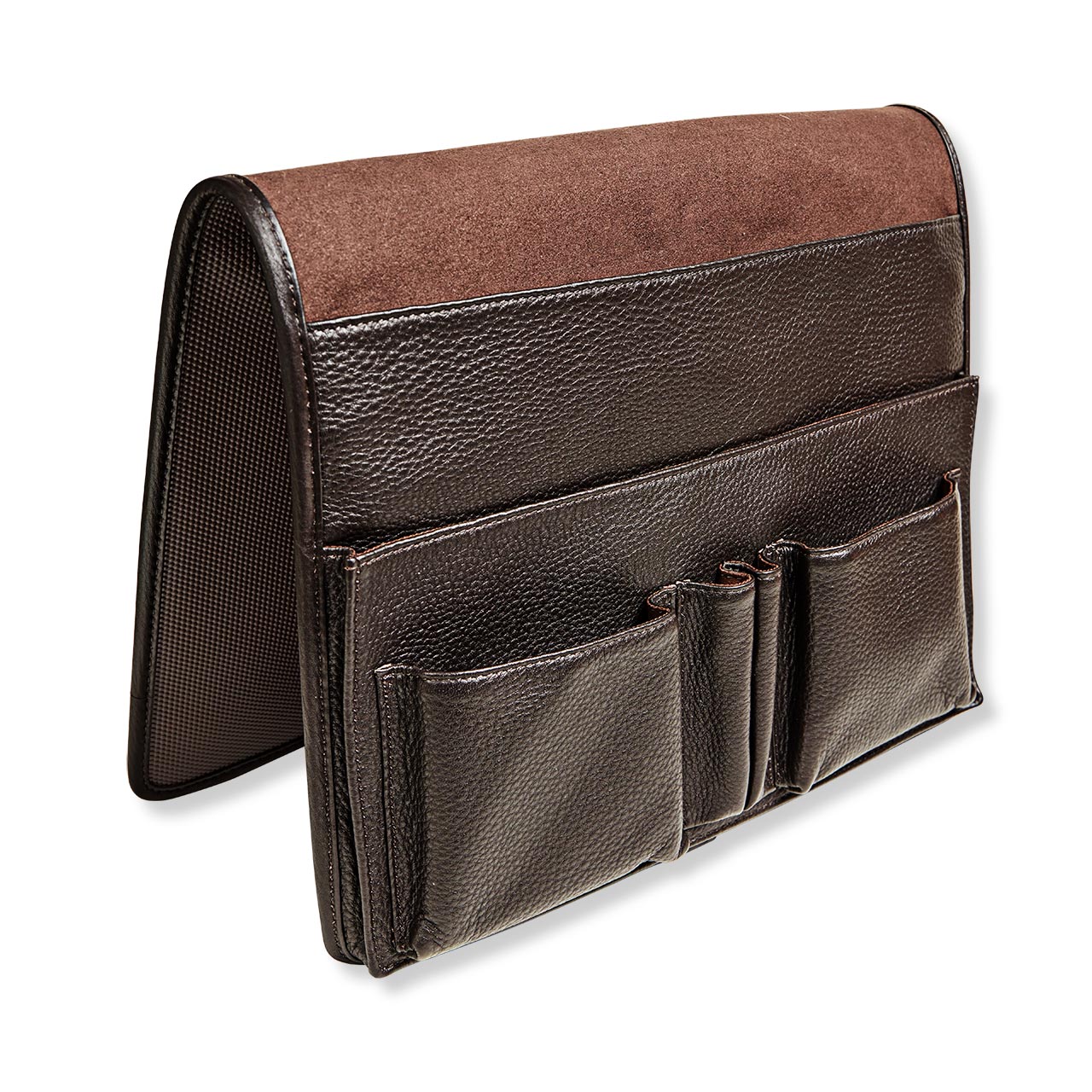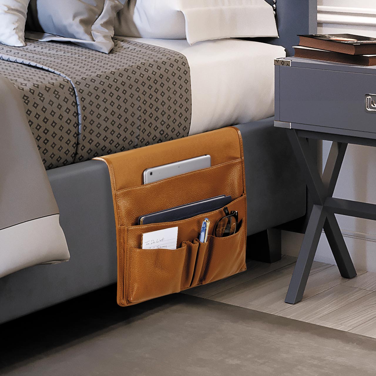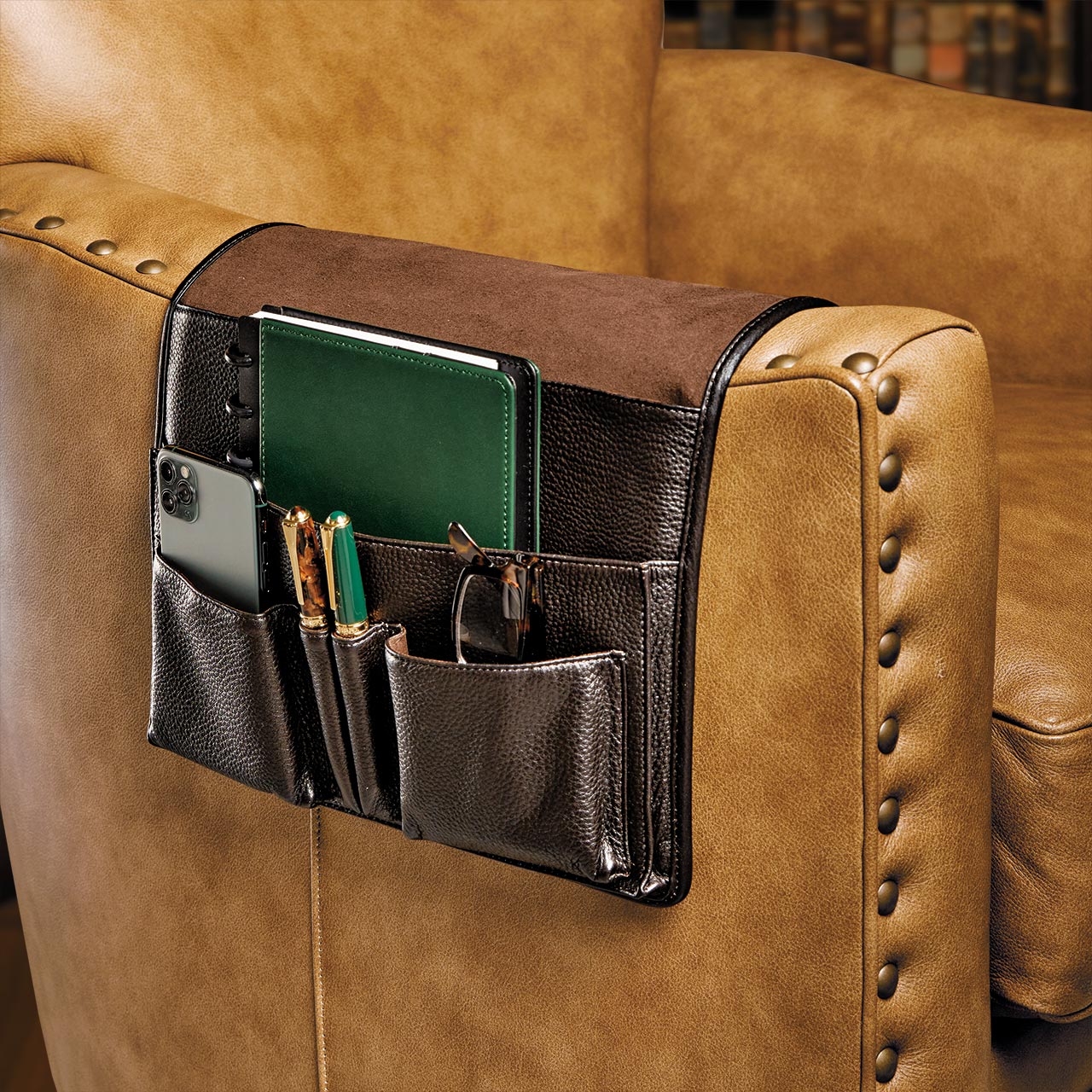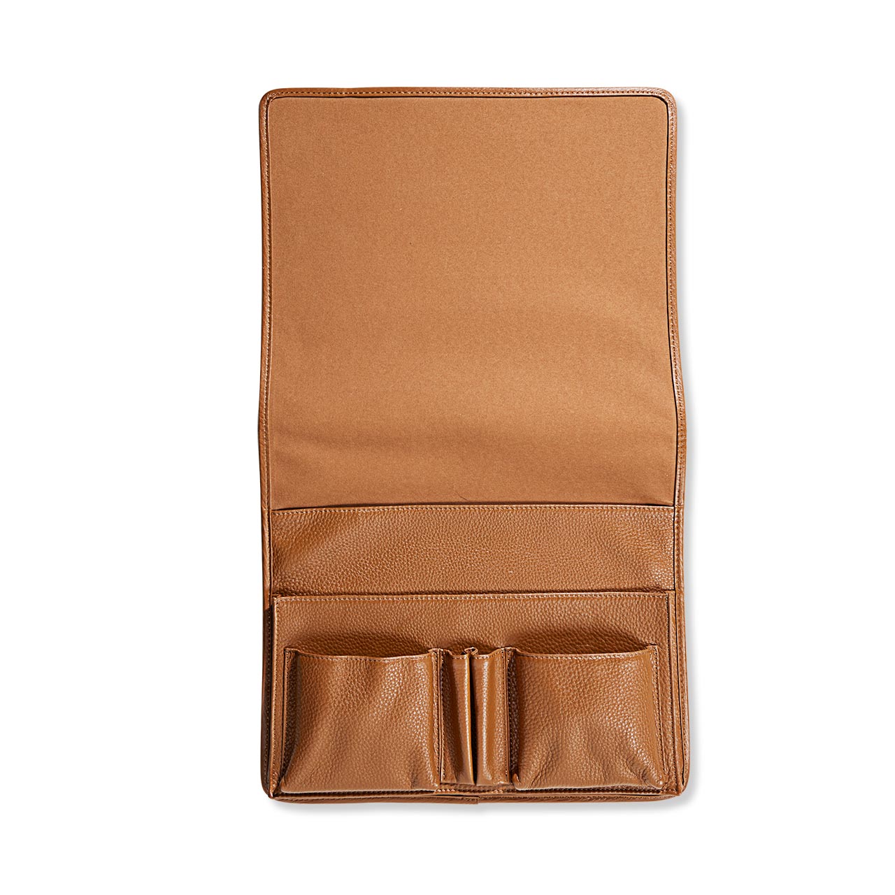 If you love reading in bed, this take-with-you caddy, crafted in soft leather, tucks sweetly under the mattress—and it’s equally useful thrown over the arm of a sofa or chair. Keep your reading materials, eyeglasses, journal and pens close at hand at bedtime, or use in the TV room to hold magazines, newspapers and all the remotes, too. Crafted in our lusciously soft full-grain leather and lined in microsuede to keep tools protected, the Bedside Companion helps minimize clutter on desks and nightstands and makes your essentials fully portable.