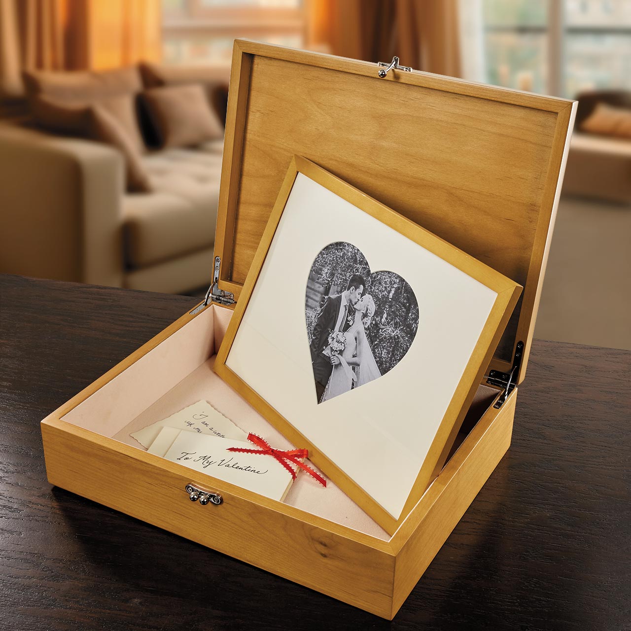A keepsake box for remembrance of things past. Keep your fondest memories close at heart and hand. The Remembrance Box is the perfect repository for souvenirs, letters and treasures and even includes a removable photo frame inside to display cherished photos. Ideal for weddings, graduations and commemorating milestones and times to remember. Personalize it with up to 100 characters.