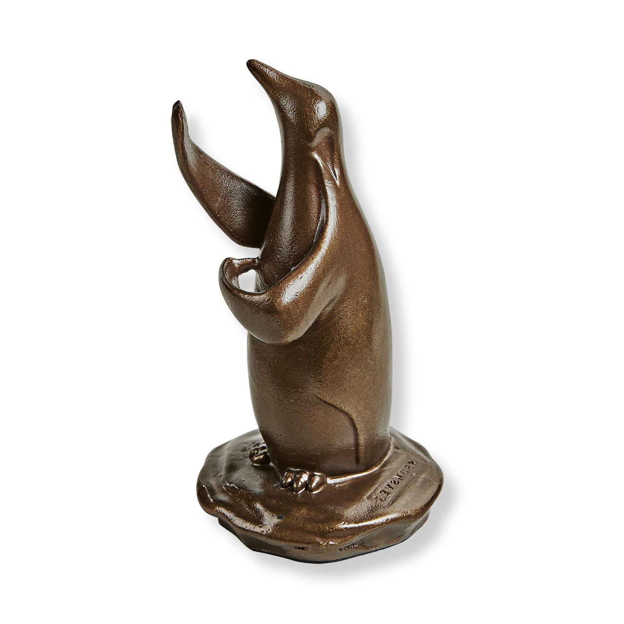 Cast in aluminum with a glimmering hand-painted bronze finish with gold highlights, our Penguin Pen Stand beautifies your deskscape and keeps your pen right at hand. This expressive penguin holds your pen of up to 1/2" in diameter cradled gently in its flippers until you’re ready to start writing.