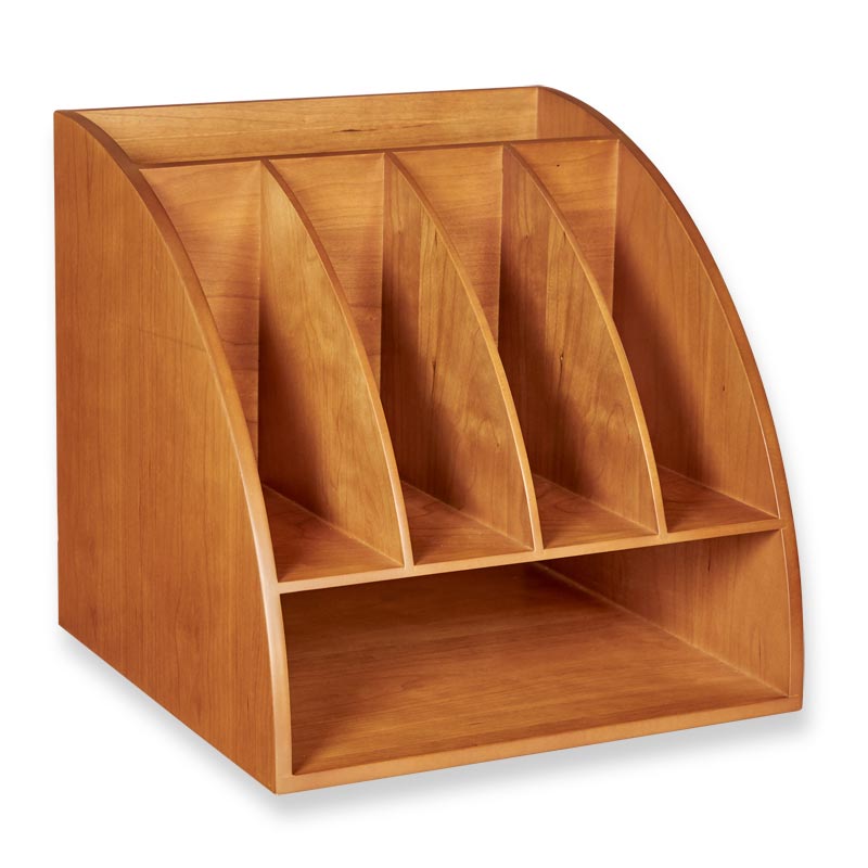 Make the most of a corner on your desk with the Cubi Corner Desk Bookcase, which boasts four shelves plus two magazine/ binder holders. Turn it on its side and it becomes a handy mail sorter. Ample space to hold books, office supplies or other items. Sized to fit on top of your desk, utilizing only the corner without taking up too much working and writing real estate.